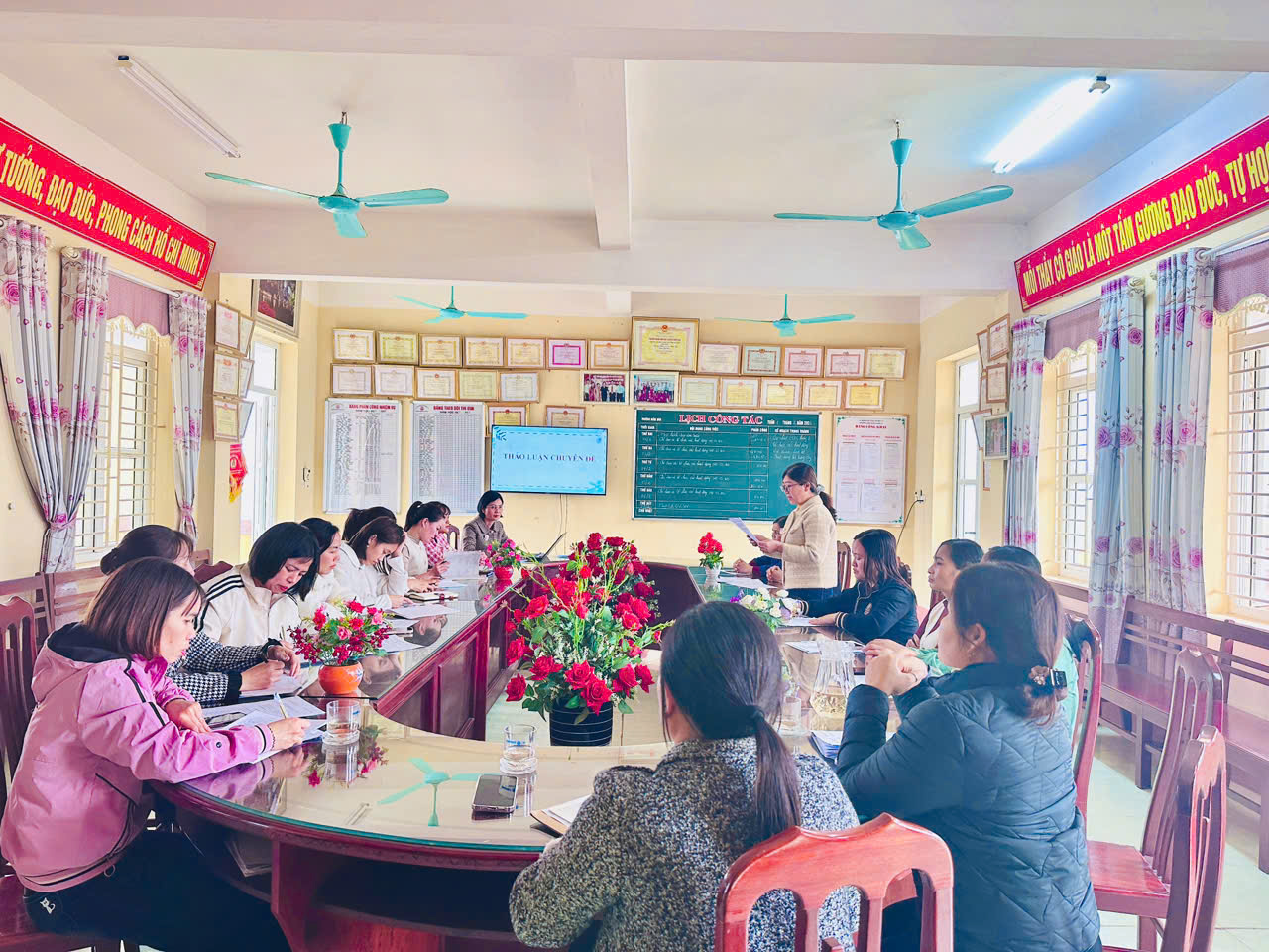 Tại Hội nghị, đồng chí Nguyễn Thị Oanh – Phó Bí thư chi bộ được phân công chuẩn bị và trình bày nội dung chuyên đề, tập trung làm rõ quan điểm của Chủ tịch Hồ Chí Minh về tinh thần trách nhiệm, tận tuỵ trong công việc của cán bộ, đảng viên. Đồng thời liên hệ việc học tập và làm theo Bác với trách nhiệm của cán bộ, đảng viên trong thực hiện chăm sóc- giáo dục trẻ, trong thực hiện nhiệm vụ năm học. Vận dụng các giải pháp nâng cao tinh thần trách nhiệm, đạo đức nghề nghiệp của đội ngũ giáo viên mầm non.